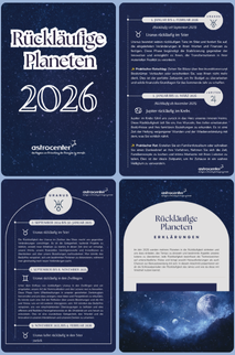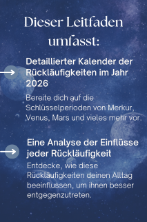 Verstehe die Einflüsse 🌌 : Tauche ein in die detaillierten Analysen der planetarischen Einflüsse, meisterhaft dargelegt von unserer Astrologin Ema Fontayne. Entdecke, wie jede Rückläufigkeit die Kommunikation, Beziehungen und andere Facetten deines Lebens beeinflussen kann.